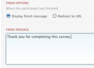 You can create a custom finish message that participants will see after they complete they survey. (Note that custom finish messages are available to Pro and Corporate customers.) Be creative with your custom messages—show a little personality! It’s always nice to know that you’re completing a survey created by a human for humans: