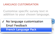 Next, we need to choose to assign a language pack to the survey. If you’ve already created a language pack for your survey, you would select it from the dropdown list, here: