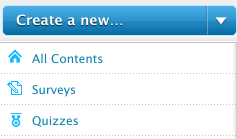 Use the big, blue, Create a new… dropdown to create a new poll, survey, quiz, or rating with the click of a button. One click takes you to the editing screen for your new poll, survey, quiz, or rating: